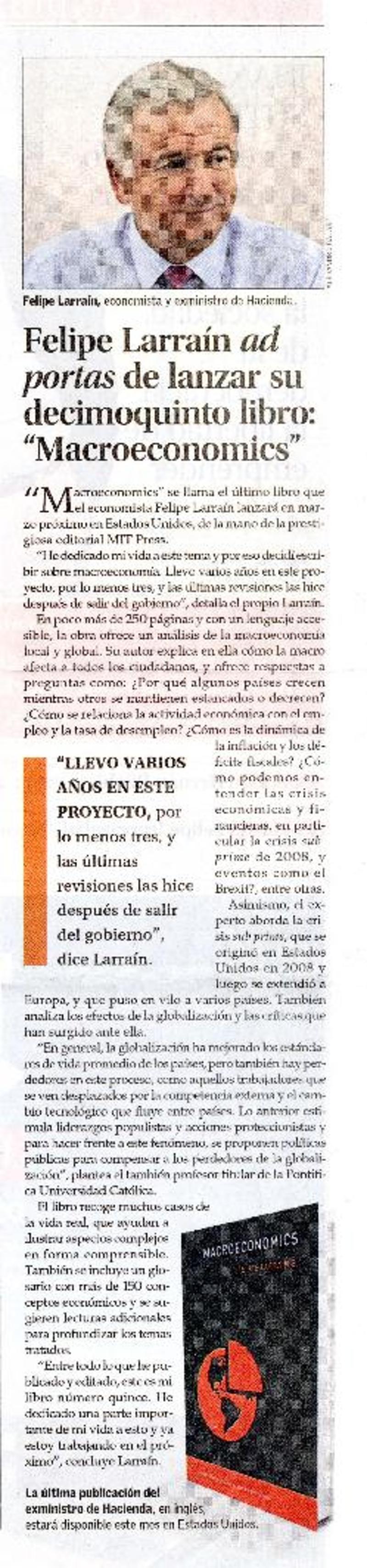 Felipe Larraín ad portas de lanzar su decimoquinto libro: "Macroeconomics" [artículo]
