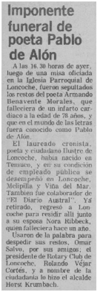 Imponente fuenral de poeta Pablo de Alón. [artículo]