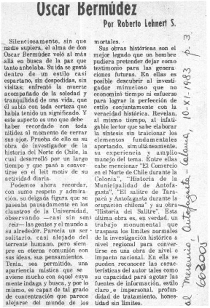 Oscar Bermúdez [artículo] Roberto Lehnart S.