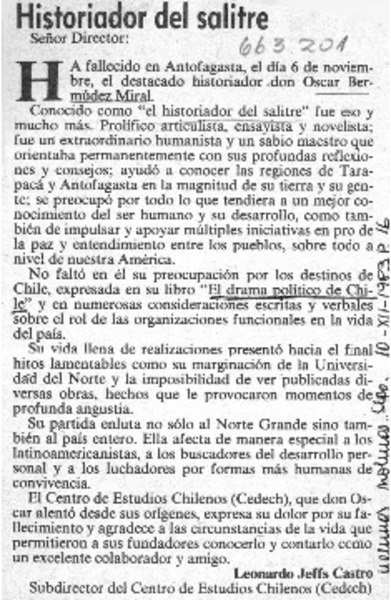 Historiador del salitre [artículo] Leonardo Jeffs Castro.