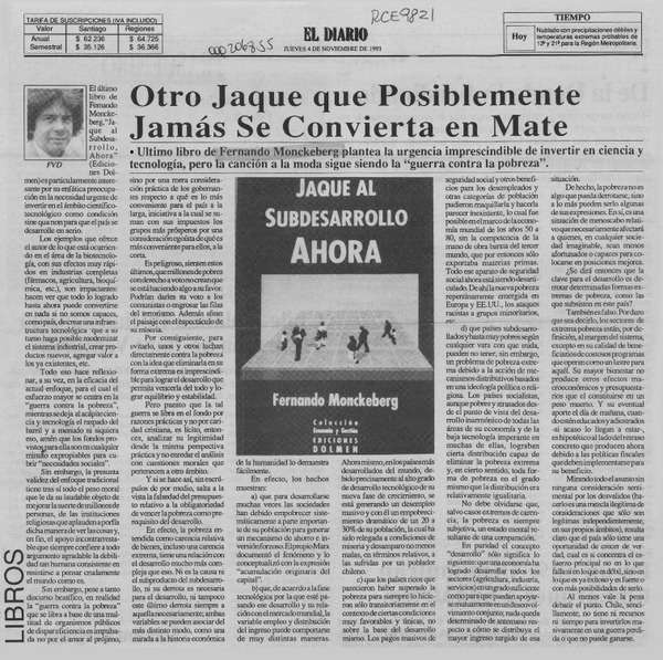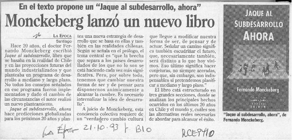 MONCKEBERG, FERNANDO - JAQUE AL SUBDESARROLLO AHORA