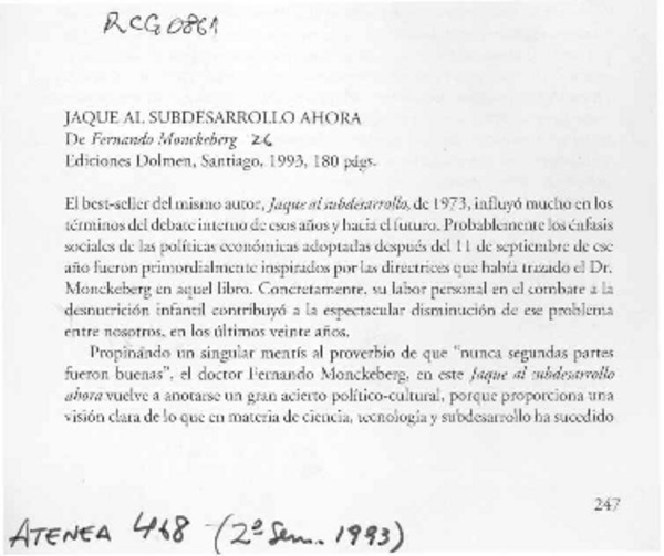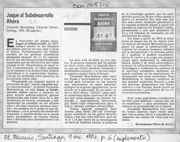 Jaque al subdesarrollo ahora [artículo] Hermógenes Pérez de Arce I.