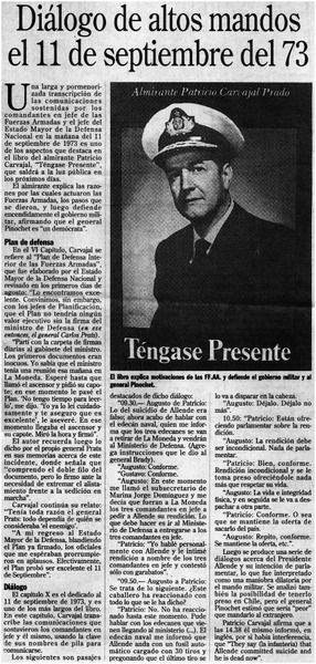 Diálogo de altos mandos el 11 de septiembre del 73 [artículo].