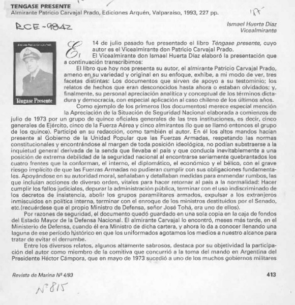 "Téngase presente"; los documentos inéditos del almirante Carvajal [artículo].