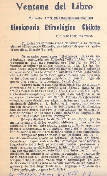 Diccionario etimológico chilote : [comentario] [artículo] Antonio Cárdenas Tabies.