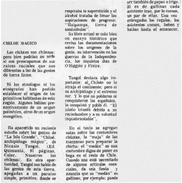 Autores chilenos - Chiloé, archipiélago mágico - Tangol, Nicasio