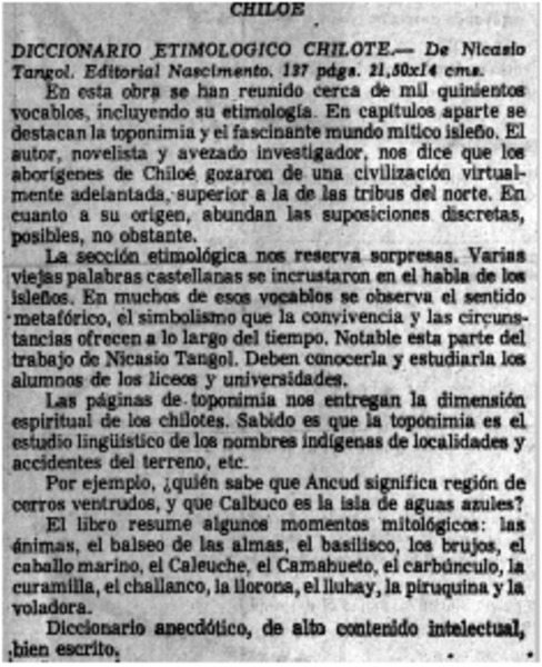 Autores chilenos - Tangol, Nicasio - Diccionario etimologico chilote