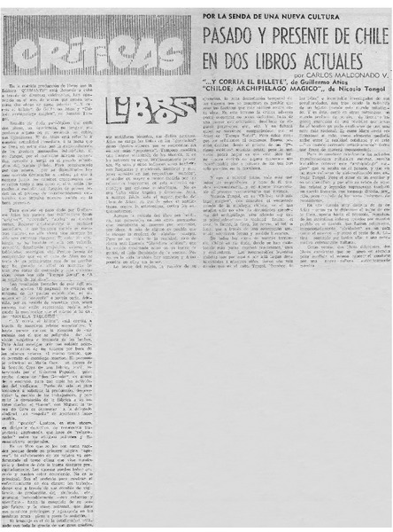 Pasado y presente de Chile en dos libros actuales [artículo] Carlos Maldonado Valenzuela.