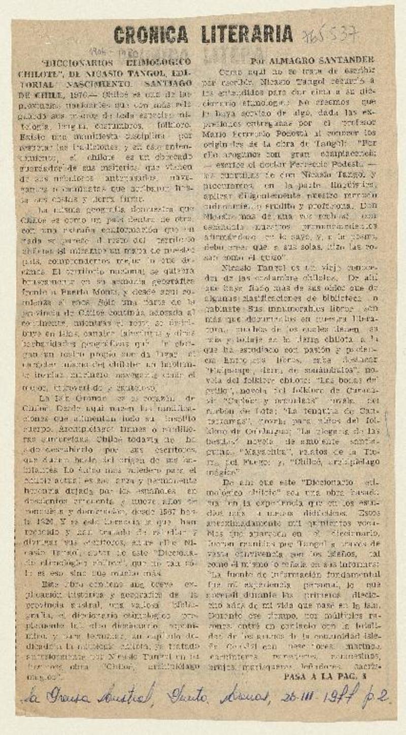 "Diccionarios etimologico chilote" [artículo] Almagro Santander.