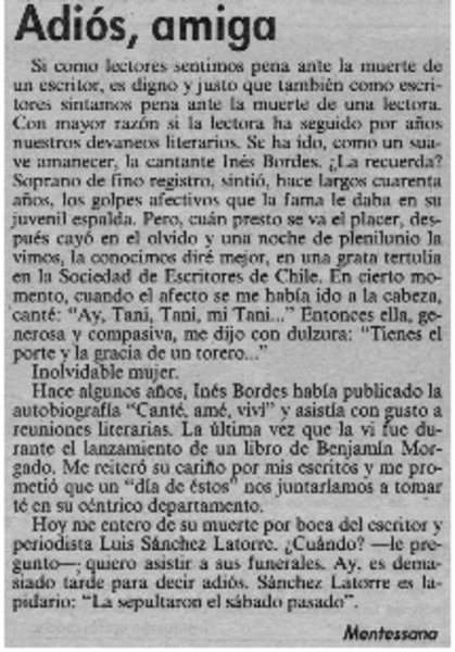 Inés Bordes, un lujo de amiga y de mujer. [artículo]