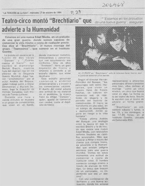 Cabaret musical "Brechtiario" florece en Ciudad Jardín. [artículo]