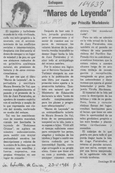 "Mares de leyenda" [artículo] Priscilla Marinkovic.