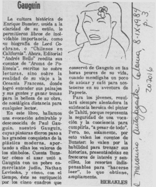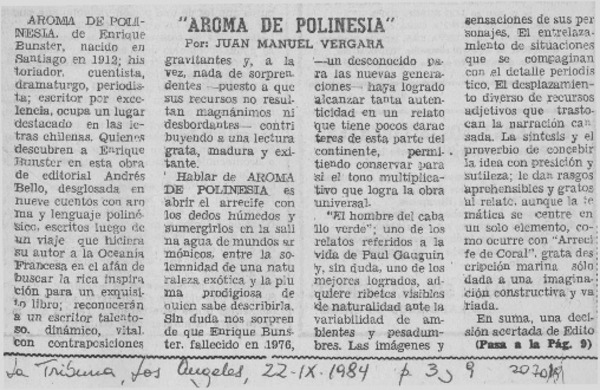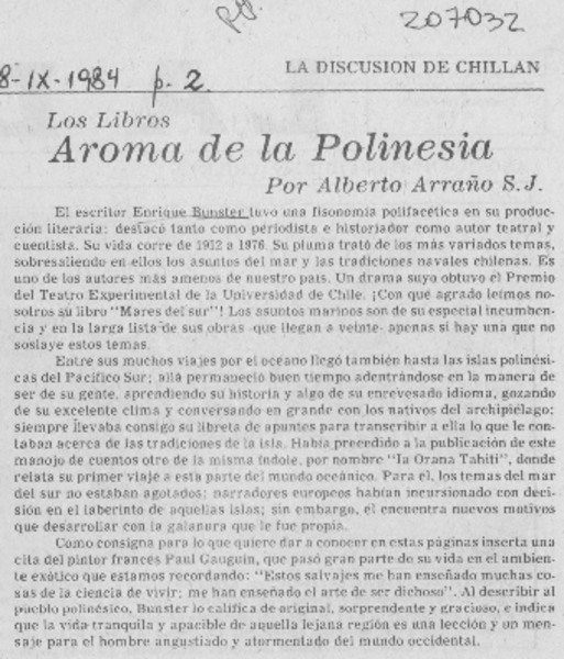 "Aroma de Polinesia" de Enrique Bunster [artículo].