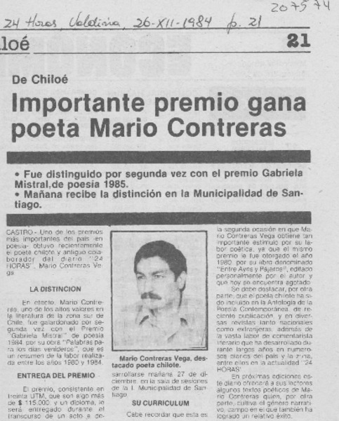Premio para un poeta [artículo] Roberto Silva Bijit.