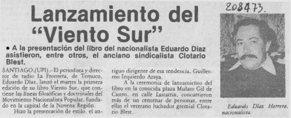 Libro "Viento sur" lanzan hoy en Temuco [artículo].
