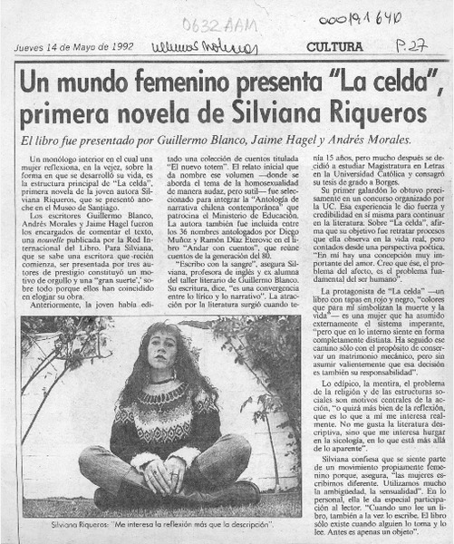 "La celda", de Silviana Riqueros [artículo] Carlos León Pezoa.