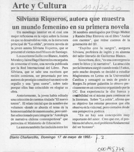 Silviana Riqueros, autora que muestra un mundo femenino en su primera novela [artículo].
