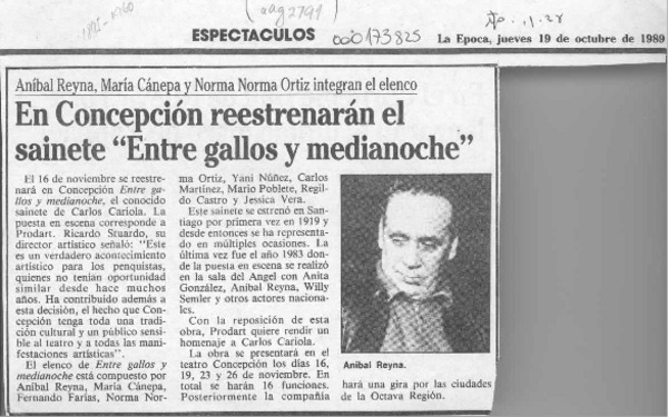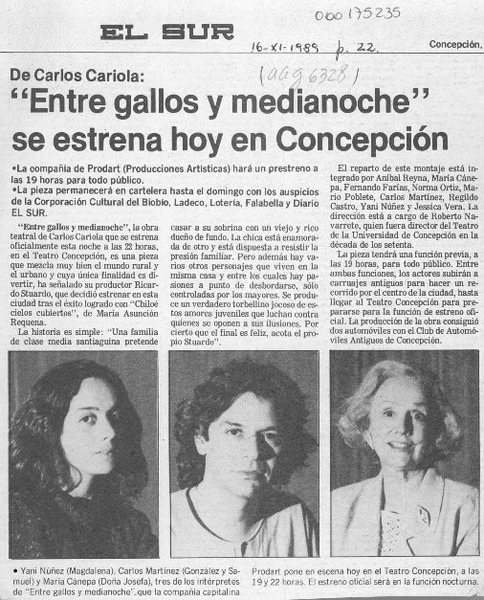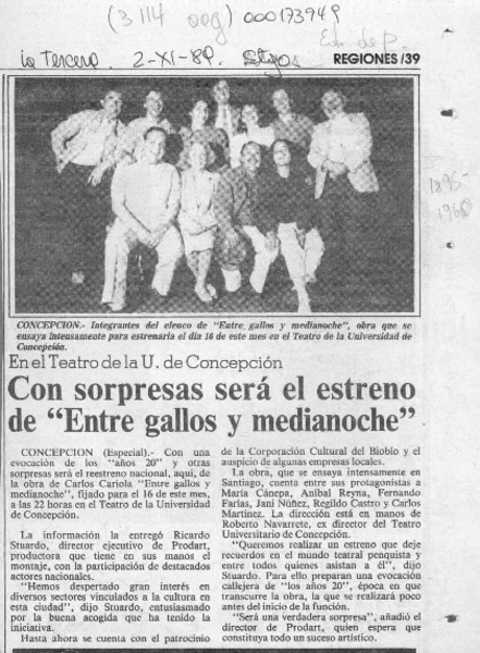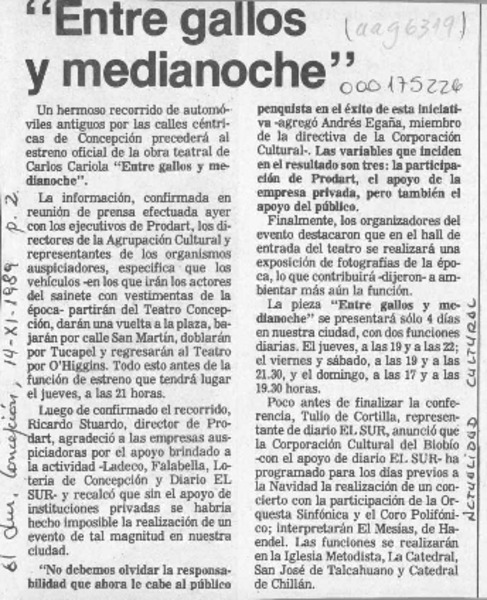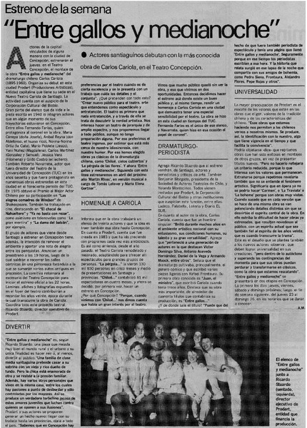 "Entre gallos y medianoche" anuncia estreno en Concepción [artículo] Mario Aravena M.