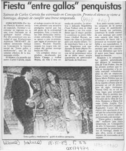 Fiesta "entre gallos" penquistas [artículo] Jaime Patricio Ramírez.