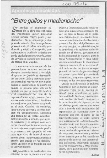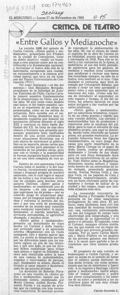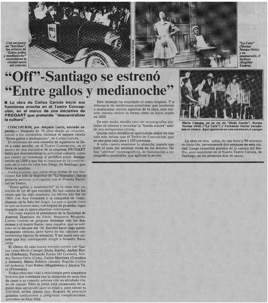 "Off"-Santiago se estrenó "Entre gallos y medianoche" [artículo] Amparo Lavín.