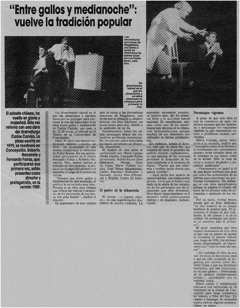 "Entre gallos y medianoche" en el Parque y en versión '90 [artículo] Yolanda Montecinos.