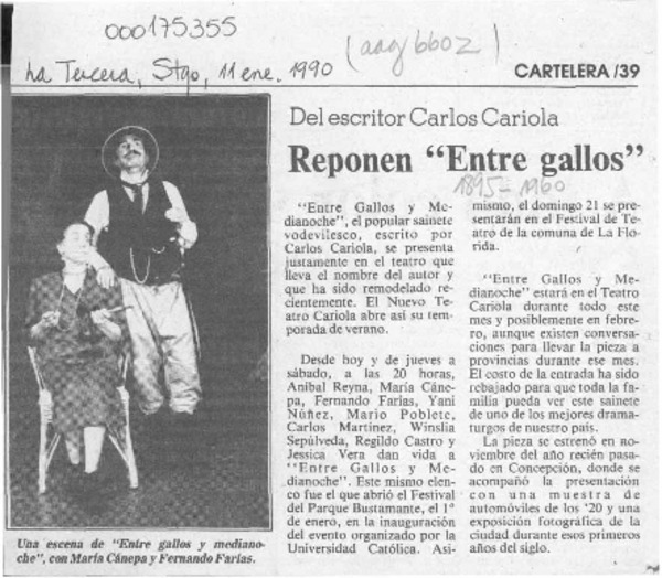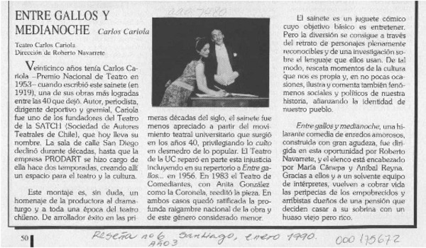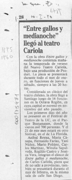"Entre gallos y medianoche" llegó al teatro Cariola [artículo].