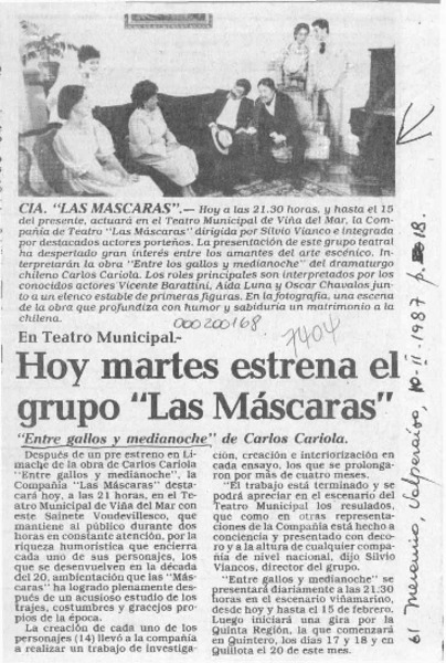 Hoy martes estrena el grupo "Las máscaras" [artículo].