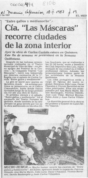 Cía. "Las máscaras" recorre ciudades de la zona interior [artículo].