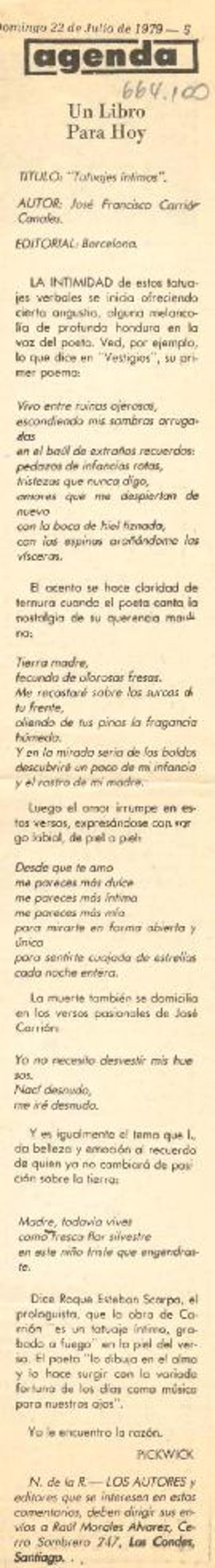 Autores chilenos - Carrión Canales, José - Tatuajes íntimos