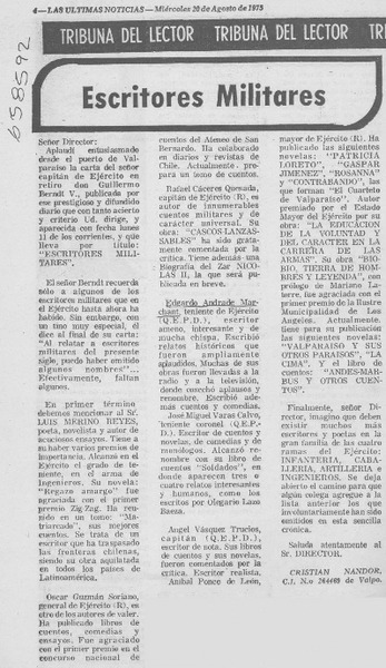 Escritores militares [artículo] Cristian Nandor.