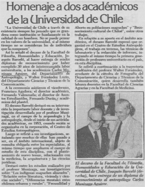 Homenaje a dos académicos de la Universidad de Chile [artículo].