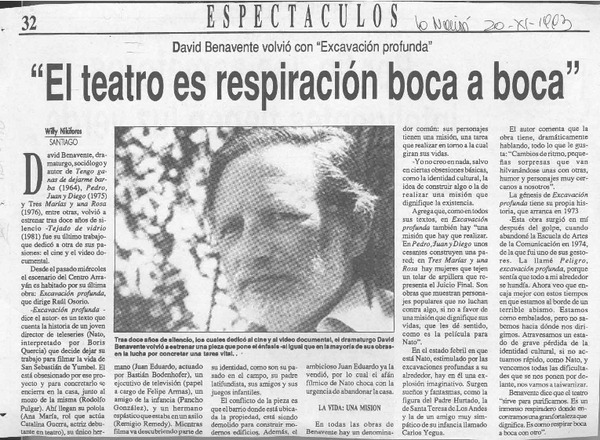 "El teatro es respiración boca a boca" [artículo] Willy Nikiforos.