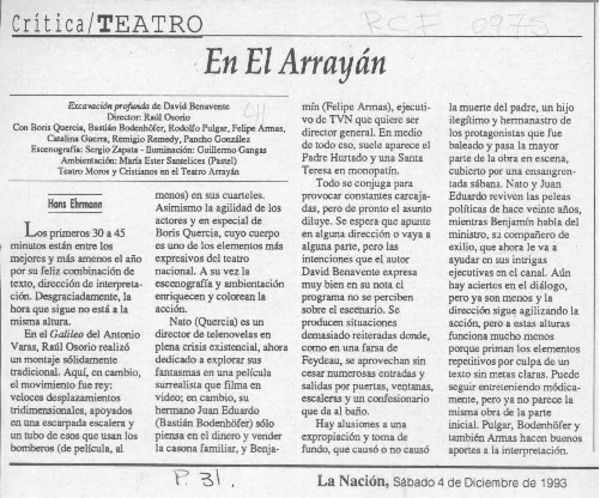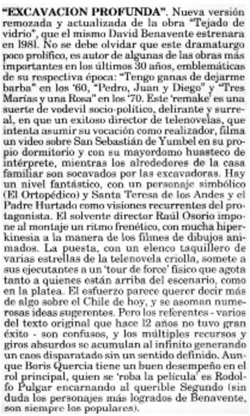 Teatro de contenido, "Excavaciøn profunda" [artículo] Yolanda Montecinos.