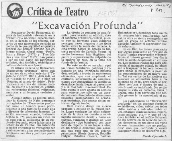 "Excavación profunda" [artículo] Carola Oyarzún L.