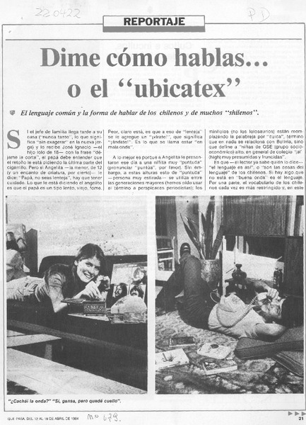 Dime cómo hablas -- o el "ubicatex" [artículo] V. M.