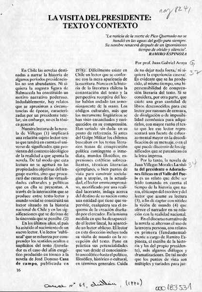La visita del Presidente, texto y contexto [artículo] Juan Gabriel Araya.