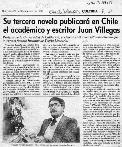 Juan Villegas Morales "El discurso lírico de la mujer en Chile [artículo] Haydee Ahumada Peña.