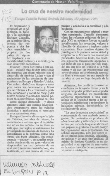 La cruz de nuestra modernidad [artículo] Héctor Velis Meza.