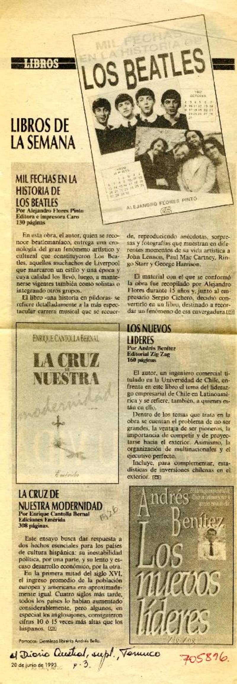 Autores chilenos - Cantolla Bernal, Enrique - Cruz de nuestra modernidad - Flores Pinto, Alejandro - Mil fechas en la historia de Los Beatles - Benítez P., Andrés - Nuevos líderes