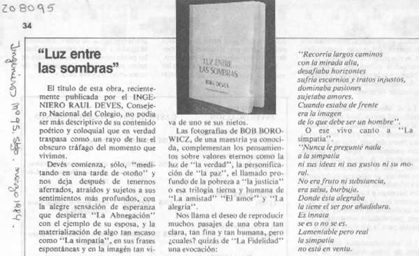 DEVES, RAUL - LUZ ENTRE LAS SOMBRAS
