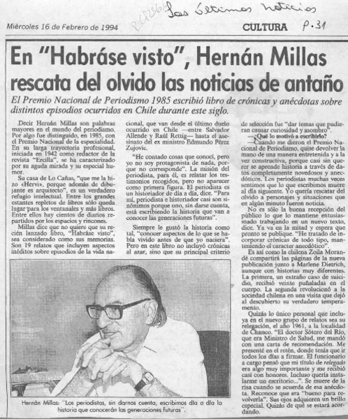 Habráse visto! artículos de Hernán Millas [artículo] Hugo Montes Brunet.