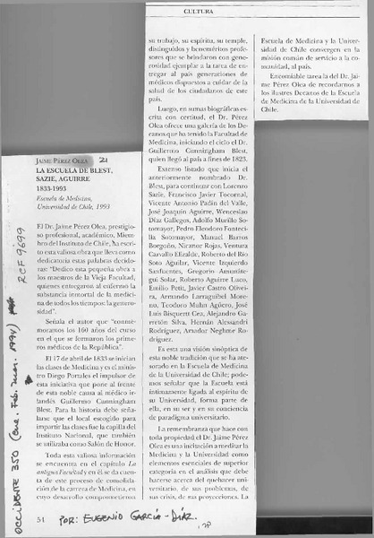 PEREZ OLEA, JAIME - ESCUELA DE BLEST, SAZIE, AGUIRRE, 1833-1993