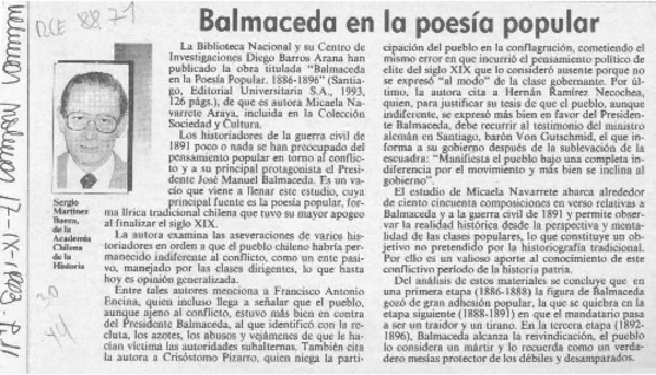 Balmaceda en la poesía popular [artículo] Sergio Martínez Baeza.