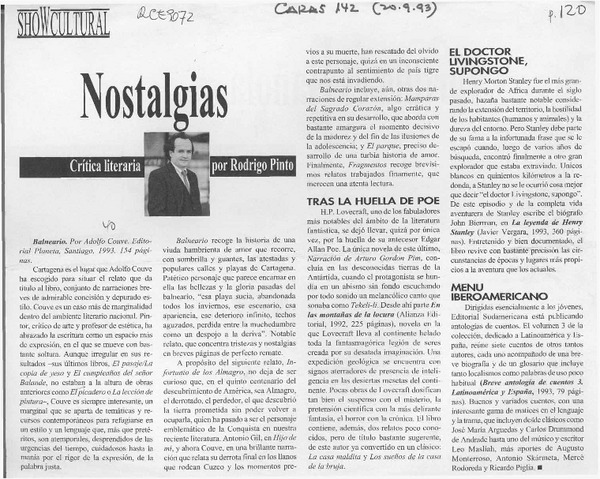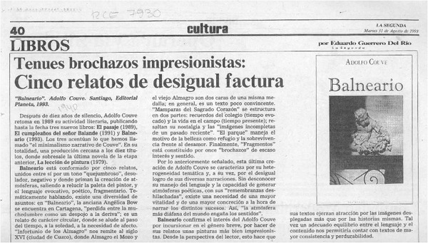 Adolfo Couve, "Balneario" [artículo] Carlos Jorquera Alvarez.