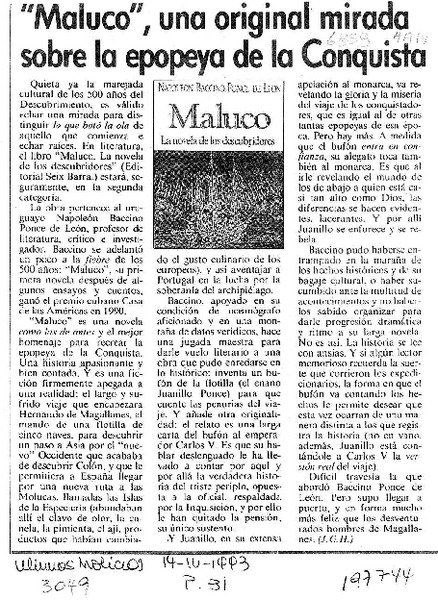 "Maluco", una original mirada sobre la epopeya de la Conquista [artículo] J. G. H.