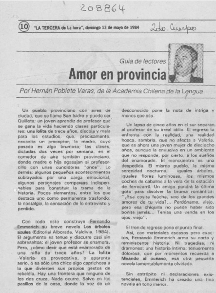 Amor en provincia [artículo] Hernán Poblete Varas.
