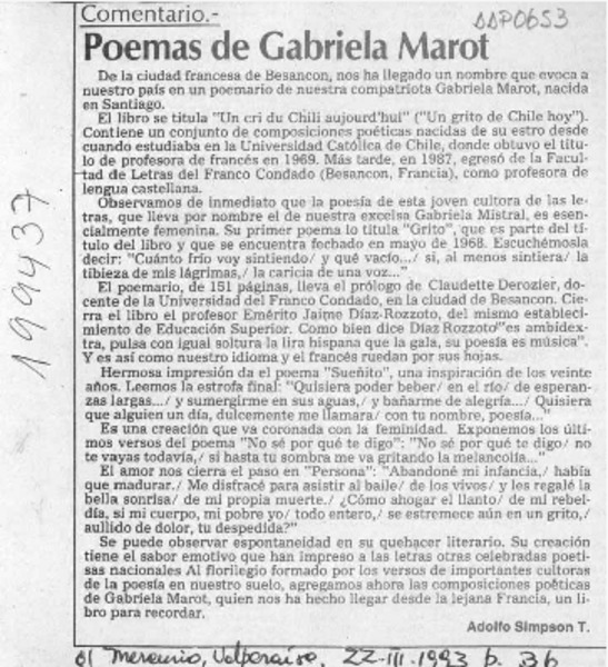 Poemas de Gabriela Marot [artículo] Adolfo Simpson T.