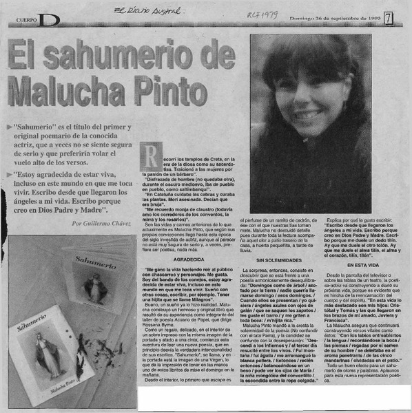 El sahumerio de Malucha Pinto [artículo] Guillermo Chávez.