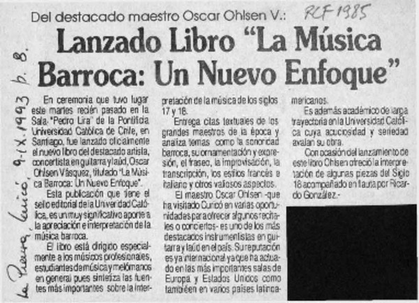 Autores chilenos - Ohlsen Vásquez, Oscar - La musica barroca, un nuevo enfoque