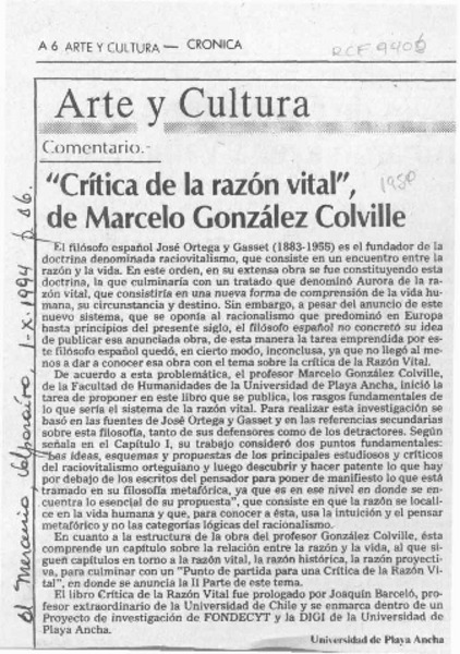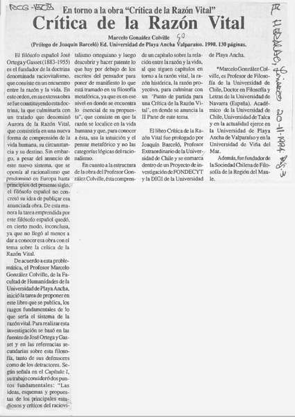 "Crítica de la razón vital", de Marcelo González Colville [artículo].